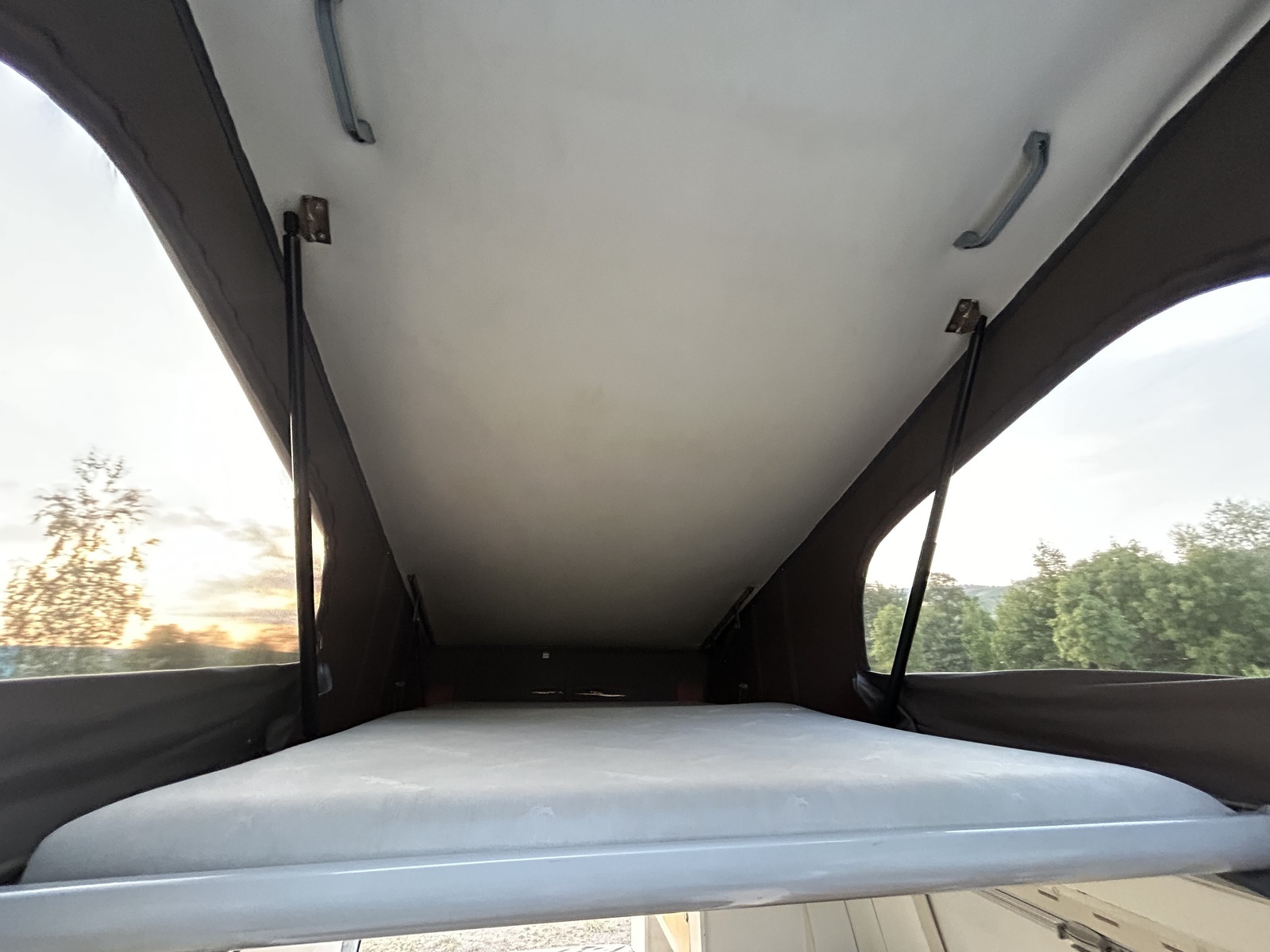 4 Sitz und Schlafplätze (unten 114 x 195, oben 108 x 185) mit komfortablem Topper für unten zusätzlich